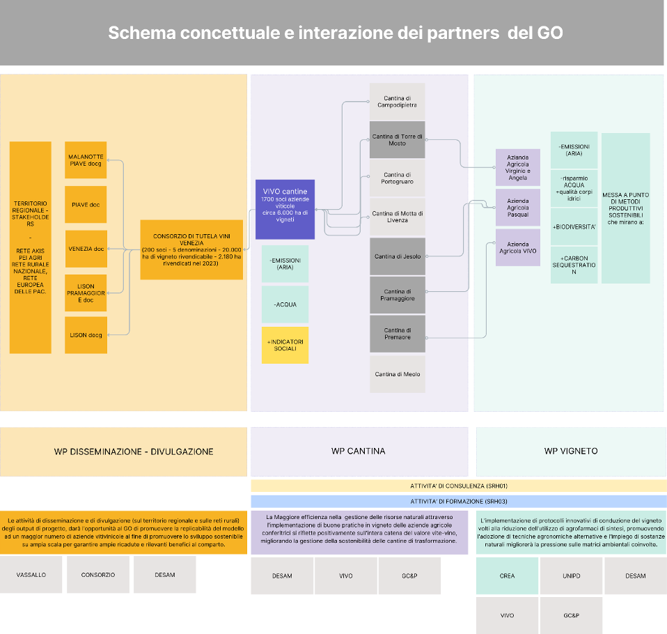 La viticoltura è centrale nell’economia veneta, ma l’intensivo uso di meccanizzazione in vigneto sta sollevando crescenti preoccupazioni per gli impatti negativi su suolo e biodiversità. Il suolo non è solo il substrato di crescita, ma un ecosistema vivo che influenza la qualità dell’uva, la resilienza della vite e, di conseguenza, la qualità del vino. Le lavorazioni frequenti, soprattutto in periodi piovosi, aumentano il rischio di compattamento e perdita di porosità, compromettendo i servizi ecosistemici del suolo. Avere viti con radici sane significa meno input chimici, migliore assorbimento dei nutrienti e maggiore qualità in cantina. Nelle aree del Veneto orientale, dove opera Vi.V.O. Cantine, la pressione agricola è elevata, ma anche il potenziale per un modello sostenibile. Il progetto mira a promuovere una gestione del vigneto che preservi il suolo, riduca l’impatto ambientale e valorizzi il “terroir”, elemento chiave per la qualità e il valore del vino. L’adozione di colture di copertura, tecniche di lavorazione minima, fertilizzazione organica e gestione integrata della difesa contribuiranno a rigenerare la fertilità e ridurre l’erosione. Con il coinvolgimento diretto di Vi.V.O., dei Partner tecnici di progetto (CREA, TESAF – Università di Padova, Desam Ingegneria e ambiente, Studio Vassallo), dei viticoltori e del Consorzio Vini Venezia, il progetto agisce in linea con la strategia UE “Soil 2030” e gli obiettivi di sostenibilità. Conservare il suolo significa proteggere il vino, l’ambiente e il futuro dell’agricoltura.
